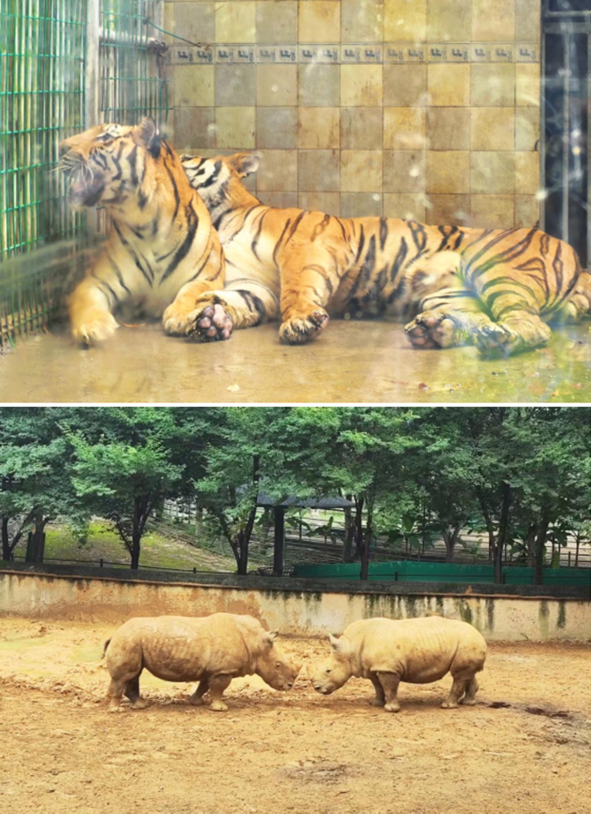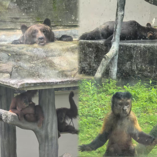 在老虎園區(qū)里,威風凜凜的白虎和東北虎隔著籠子互相打量,時而發(fā)出低沉的吼聲交流,而另一邊的兩頭東北虎則親密地緊挨在一起打盹,斑駁的樹影灑在它們金黃的皮毛上。不遠處的犀牛區(qū),兩只體型龐大的白犀牛正在上演領地之爭,它們用粗壯的角互相頂撞,揚起陣陣塵土,發(fā)出沉重的鼻息聲;非洲大羚羊區(qū)最是熱鬧,高大的羚羊們溫順地低下頭,伸著脖子吃著小朋友親手投喂的食物,長長的睫毛在陽光下忽閃忽閃。樹冠間,靈巧的長臂猿扒著樹干蕩著秋千,偶爾還會停下來好奇地觀察下方拍照的游客。園區(qū)主干道上,飼養(yǎng)員牽著一匹可愛的袖珍小馬漫步,珍珠馬的脖子上系著的鈴鐺隨著步伐發(fā)出清脆的聲響。整個園區(qū)洋溢著人與動物和諧相處的氛圍。