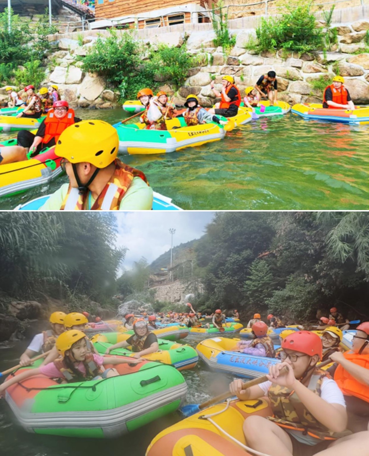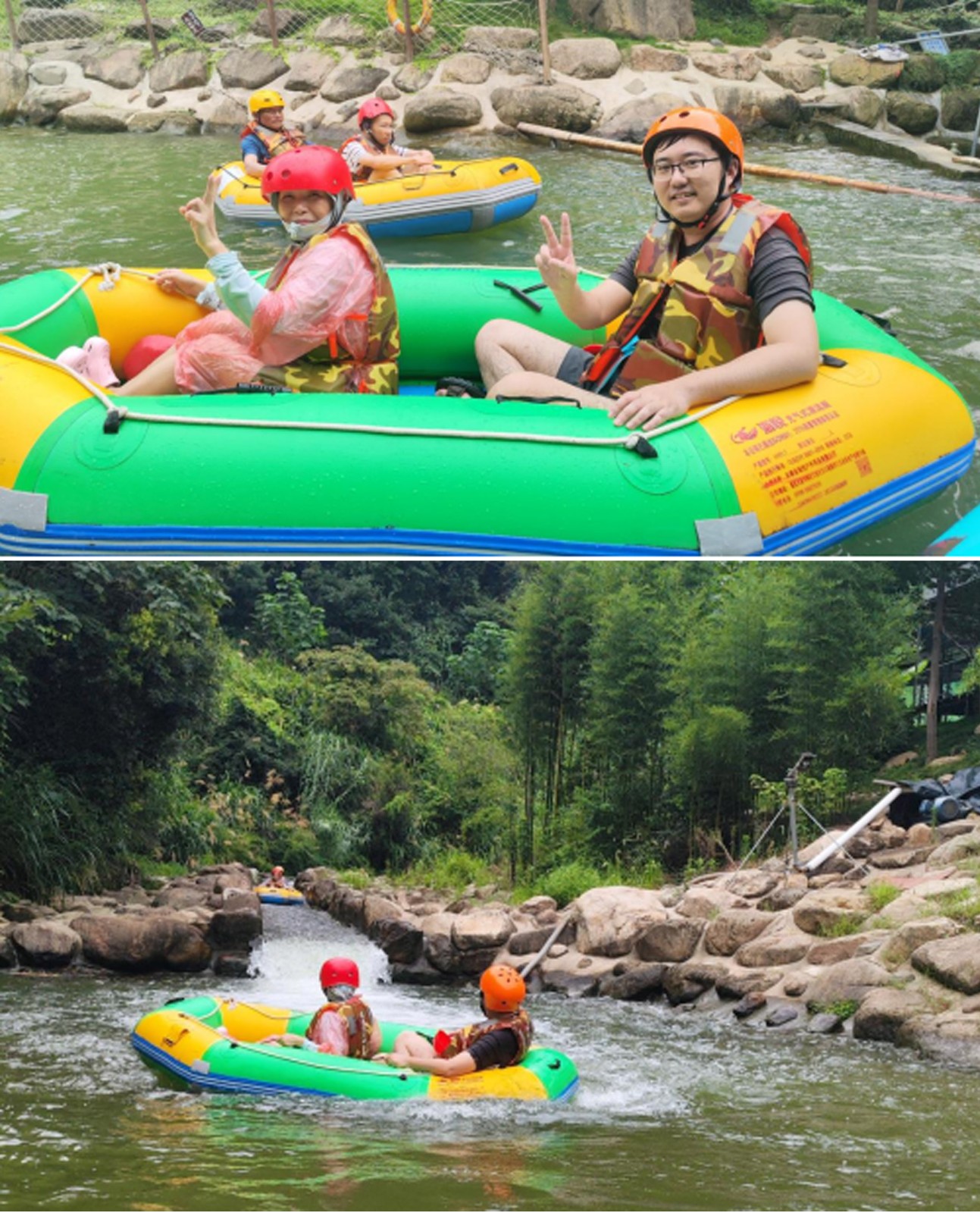小伙伴們換上裝備,踏進皮筏,兩兩一隊,水瓢、水槍齊上陣,小伙伴們瞬間化身“漂流勇士”,寧靜的河道霎時間成為潑水狂歡的戰(zhàn)場,歡聲笑語與水花四濺交織在一起。清涼的溪水驅散了夏日的燥熱,激烈的“對戰(zhàn)”更點燃了團隊的活力與激情,一場?酣暢淋漓的夏日消暑大戰(zhàn)?讓大家徹底放飛自我,拉近了彼此距離,也為第一天的行程注入了無限活力。
